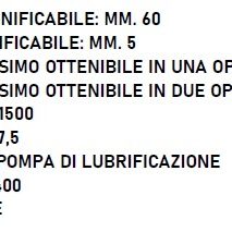 Affilatrici Calandre Centri di lavoro Cesoie Cesoie universali Compressori Conificatubi Curvaprofilati Curvatubi Fresatrici Lapidelli Linee di Taglio Macchine per lavorazione alluminio Presse eccentriche Presse idrauliche Presse piegatrici Puntatrici Rastrematubi Sbavatrici Segatrici a nastro Smussatrici Spianatrici Stozzatrici Torni Trapani Troncatrici Varie CONIFICATUBI DPA 60 CONIFICATUBI DPA 60 Marca DPA Modello 60 Categoria Conificatubi Condizione nuovo, CE Caratteristiche 2 matrici Capacità Diam. max mm. 60 – minimo mm. 5